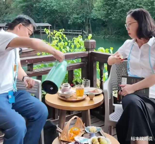 主动为妻子倒水,等到饭点的时候,他则主动表示一起去吃饭,在这个过程中,两人手牵手,好似初恋一般。