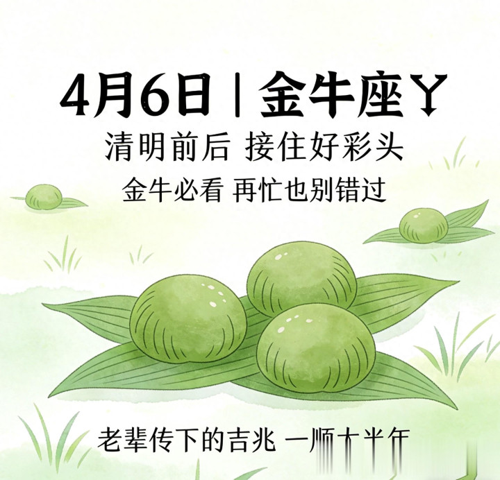 4月6日,清明刚过,春气温润,气场平和,正是一年里承接好运、调整状态的好时候。老辈人常说,清明时节接彩头,一年顺遂不用愁,针对金牛座,这段时间刚好有三个实打实的好彩头,不用刻意求,只要留心接住,上半年安稳无虞,下半年财运、人缘双旺,日子越过越有奔头。