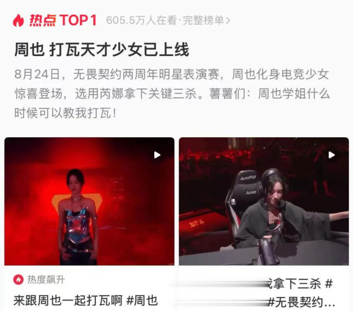 在嘉年华瓦手明星表演赛环节,周也、Amber等明星选手在舞台上秀出了自己的实力,周也打出三杀操作,让不少人意识到她从内测就开始玩了,而这也接连引爆热搜,印证着瓦手的影响力已经辐射到了泛大众圈层。