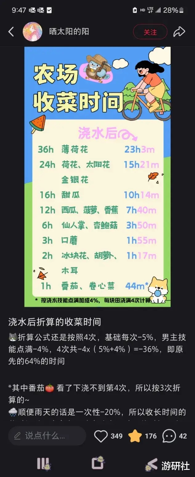 也因此你会看到,有人很认真地为“丰果农场”做出一张“农场收菜时间表”,至于男主们,在种田面前,也只能沦为走来走去、忙着干活“工具人”了。